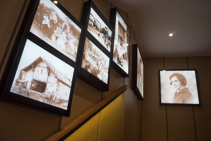 Ahora cuenta con elevador y en las escaleras de acceso pueden verse fotos antiguas da la familia que atestigüan el devenir del establecimiento hostelero más famoso de Miranda de Ebro, hoy toda una institución entre los restaurantes de la provincia.
