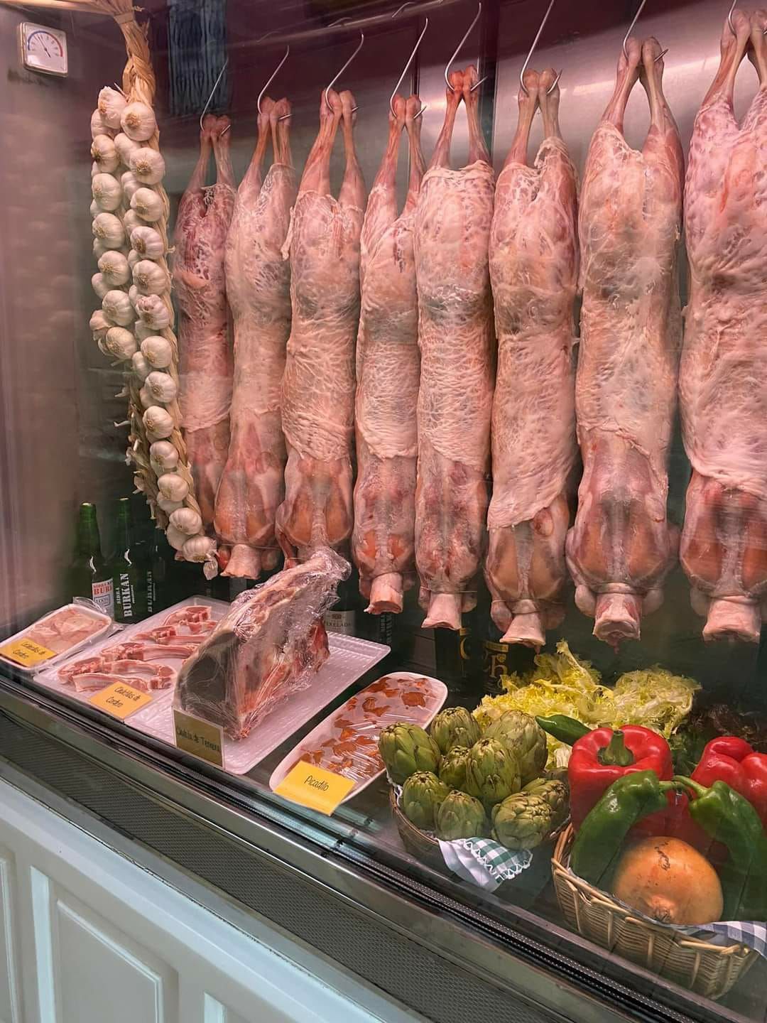 Para comprobar la calidad del producto, basta con pararse frente a su escaparate frigorífico, donde se exhiben tentadores los perretxikos, fuentes de boletus en temporada, el picadillo, los ajos… además del pescado –véanse lubina salvaje, merluza de pincho, almejas a la gallega, gambas de Huelva…–, los corderos y la caza, con las perdices y la liebre como reinas.